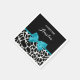 Chic schwarz-weiß giraffe bedruckte Papierservietten mit einem trendigen aqua-blauen Band in einem gürteligen Bogen. Personalisieren Sie das süße Tier-Design, indem Sie den Namen des Party hinzufügen. Flachdruckbild, NICHT tatsächlicher Bogen.