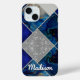 Chic Girly Imitate Glitzer silber blauen geometrischen Quadrate iPhone 15 Case. Um es besonders zu machen, ist es auch mit Monogramm und personalisiert mit Namen, Initialen oder beliebigem Text, klicken Sie auf den Link "Weiter anpassen" und verwenden Sie das Design-Tool, um das Design zu ändern, wenn Sie möchten. Schönes, modernes und cooles iPhone 15 Case Cover. Zeigen Sie Ihren persönlichen Stil, sehen Sie modern, trendig und fühlen Sie sich stilvoll um Ihre Freunde mit einem einzigartigen Design auf Ihrem iPhone oder passen Sie es über ein anderes Produkt Ihrer Wahl. Ob zum Valentinstag, zu Weihnachten oder als Geschenk im Allgemeinen, es ist eine tolle Geschenkidee für jedes Mädchen, das moderne funkelnd Dinge Lieben. BITTE BEACHTEN SIE: Dies sind flache Druckgrafiken - kein echter Glitzer, Juwelen oder erhabene Teile.