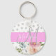 Chic & Girly Floral White Pink Grau Monogramm Name Schlüsselanhänger