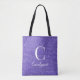 Chic Girly Lila Imitats Glitzer Monogram Tote Bag mit trendigen Imitats lila Glitzer und einem anpassbaren Monogramm und Namen.