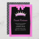 Chic Glitzer Diamant Krone 16 . Geburtstag auf schwarz-rosa Party Einladung. Text für 15., 16. Geburtstagsfeiern personalisiert.