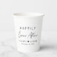 Chic Paper Tassen für Ihre Hochzeitsfeier, Verlobungsfeier, Probe-Dinner und andere Hochzeitsfeiern mit "Happily Ever After" in einfacher Typografie und einem stilvollen modernen Drehbuch, Ihre Namen durch ein Herz und Ihr Hochzeitsdatum verbunden.
