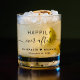 Chic Hochzeitswhiskey Glas für Braut und Bräutigam mit "Happily Ever After" in einer Mischung aus einfachen modernen Typografie und ein elegantes Drehbuch mit Swashes, Ihre Vornamen verbunden durch ein Herz und Ihr Hochzeitsdatum.