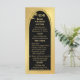Elegante Menükarte mit goldfarbenem und schwarzem Design mit glitzerndem Konfetti. Schön für eine Deko-Hochzeit oder eine Herbst- oder Winterhochzeit.