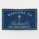 Willkommen Familie und Freunde in der ersten heiligen Kommunion Ihres Sohnes mit diesem Chic Gold Cross First Heilige Kommunion Willkommensbanner. Dieses 1. Communion Empfang Welcome Banner ist mit einem einfachen Goldkreuz vor einem klassischen marineblau Hintergrund ausgestattet. Personalisieren Sie Ihre persönlichen Daten mit dem Vornamen Ihres Kindes.