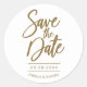 Chic Gold Calligraphy Wedding Save the Date Classic Round Sticker