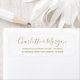 Elegante Imitate goldfarbene und weiße benutzerdefinierte Skriptkalligraphie individuelle Name moderne schicke Hochzeitsfeiern Rücksendeadressen-Aufkleber. Gut für lange, hyphenisierte Nachnamen oder doppelte Nachnamen.