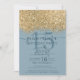 Chic Gold Dusty Blue Glitzer Confetti Quinceañera Einladung