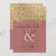 Chic Gold Dusty Rose Glitzer Confetti Wedding Save The Date
