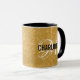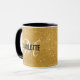 Chic gold Glitzer Tasse mit einem schwarzen Typografen und einem weißen Skript Monogramm. Personalisieren Sie mit Name und Initial.
