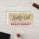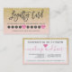 Elegante gelbe Glitzer-Glitzern pastellfarben rosa Schrift Makeup Haar rosa Herztreuekarte mit modernem handgeschriebenen Stil Pinsel Typografie auf weiß , eine einfache, berufliche und minimalistische Karte. bieten 10 Behandlungen und Rabatt für Ihre Kunden.