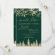 Zeit, um Ihr winterliches Hochzeitssmotiv zu feiern, mit diesem goldgelben Glitzer-Schneeflocken-Glitzern und dem schicken Pinienwald des Glitzer auf einem eleganten, dunkelgrünen Hintergrund, mit einem modernen coolen Drehbuch Schriftart Typografie. Eine schicke und elegante Hochzeitskarte Save the Date.
