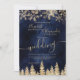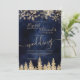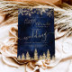 Zeit, um Ihr winterliches Hochzeitssmotiv zu feiern, mit diesem goldgelben Glitzer-Schneeflocken Glitzern und Rose Gold Glitzer Pinienwald auf einem eleganten marineblauen Aquarell-Hintergrund, mit einer modernen coolen Schrift Schriftart Typografie.