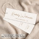 Elegante und schicke helle Creme Kleidung, Accessoires, Schmuck, Boutique usw., Preisanhänger mit minimalistischer Atmosphäre, auf dem Ihr Name oder Ihre Marke in einer stilvollen goldfarbenen Unterschriftenschrift präsentiert wird. Fügen Sie unten zusätzlichen Text in einfacher moderner Typografie hinzu. Auf der Rückseite können Sie die Größe und die Preisschablonen durch Bearbeiten im Designtool anpassen. Bitte beachten Sie, dass Zazzle das Loch nicht stanzt oder eine Schnur liefert.