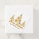 Ein schicke goldene Schrift Weihnachtsfavorit-Tag mit Ihrem Familiennamen unter schönen Bäumen aus goldenen Schneeflocken über frohen Weihnachten. Trendy Ferienaufkleber mit künstlerischem Schneeflockdesign.