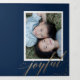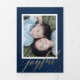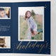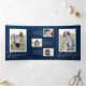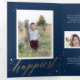 Dieses einzigartige dreiseitige Urlaubsprojekt besticht durch einen dunkelblauen Hintergrund mit Imitaten, goldenen Folienstars und Typografie. Die Frontabdeckung ist einfach ein Single-Foto. Wenn Sie die Karte öffnen, sehen Sie ein quadratisches Single-Foto mit Ihrem Urlaubstext. Wenn Sie die Karte vollständig öffnen, sehen Sie ein Foto auf dem links, ein Foto auf der rechten Seite und in der Mitte drei kleinere horizontale Fotos mit personalisiertem Text. Der Gruß auf der Innenseite sagt "Happiest Holidays" in Imitaten goldenen Folienskript mit mehr Sternen. Die Kartenrückseite ist leer, aber Sie können problemlos ein anderes Foto oder mehr Text hinzufügen. Dieses Design ist die perfekte Wahl für eine schicke und elegante Botschaft der Weihnachtsfreude. Das Multi-Foto-Layout erlaubt es Ihnen, insgesamt SEVEN Ihrer Lieblings-Fotos in verschiedenen Größen hochzuladen. Das Aussehen ist modern und dennoch elegant.