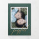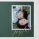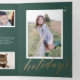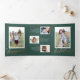 Dieses einzigartige dreiseitige Urlaubsprojekt besticht durch einen dunkelgrünen Hintergrund mit Imitaten, goldenen Folienstars und Typografie. Die Frontabdeckung ist einfach ein Single-Foto. Wenn Sie die Karte öffnen, sehen Sie ein quadratisches Single-Foto mit Ihrem Urlaubstext. Wenn Sie die Karte vollständig öffnen, sehen Sie ein Foto auf dem links, ein Foto auf der rechten Seite und in der Mitte drei kleinere horizontale Fotos mit personalisiertem Text. Der Gruß auf der Innenseite sagt "Happiest Holidays" in Imitaten goldenen Folienskript mit mehr Sternen. Die Kartenrückseite ist leer, aber Sie können problemlos ein anderes Foto oder mehr Text hinzufügen. Dieses Design ist die perfekte Wahl für eine schicke und elegante Botschaft der Weihnachtsfreude. Das Multi-Foto-Layout erlaubt es Ihnen, insgesamt SEVEN Ihrer Lieblings-Fotos in verschiedenen Größen hochzuladen. Das Aussehen ist modern und dennoch elegant.