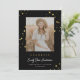 Diese schicke und dennoch skurrile Ankündigung des Abschlusses verfügt über einen schwarzen Hintergrund (anpassbar), eine Sprinklerei von Imitaten goldenen Sterne, Imitate Gold "GRADUATE", und ein vertikales Foto. Sie können dieses Design noch weiter anpassen, indem Sie ein anderes Foto oder einen zusätzlichen Text auf der Rückseite hinzufügen.