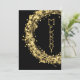 Kreise und goldene Sterne und Punkte auf einem schwarzen Hintergrund umgeben das Wort "MERRY" oder Ihre Nachricht auf der Vorderseite und Ihre Namen, Gruß und Logo auf der Rückseite. Weitere Stile und passende Artikel in unserer Sammlung.