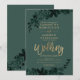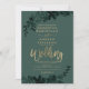 Chic gold Typografie Blumengrün Hochzeitseinladung mit handgemalten grünen Aquarellblättern. Der grüne Hintergrund ist vollständig anpassbar