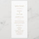 Dieses schicke Goldtypografie-Hochzeitsprogramm ist perfekt für eine moderne Hochzeit. Das einfache Design besticht durch klassisch minimalistische Gold- und Weißtypografie mit einem rustikalen Bohhustengefühl. Anpassbar in jeder Farbe. Behalt das Design minimal und elegant, wie es ist, oder personalisiere es durch Hinzufügen von eigenen Grafiken und Kunstwerken. Geben Sie den Namen der Braut und des Bräutigams, das Datum und den Ort der Hochzeit, Dankeschön-Nachricht, Dienstordnung, Brautparty und ein optionales "in Loving Memorial" ein.