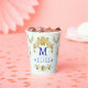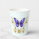 Chic Golden Blume & Blue Schmetterlinge mit Monogr Pappbecher