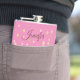 Chic Girly Flask in Tönen von Rosa, mit Grafiken von Gold und hellrosa Konfetti und Gold Stiletto High Heels. Personalisieren Sie den Text für sich selbst oder als eine großartige Geschenkidee für eine Braut.