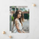 This chic graduation announcement features sophisticated handwritten black script over a trendy full photo of your graduate. Customize this grad card with a 2nd high school, college, or university photograph on the back below your senior details. The back picture is overlaid with stylish sheer white for a modern look to your card.