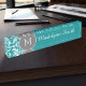 Chic Grau und Aquamarin Damask Muster Custom Monog Namensplakette