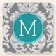 Chic Grau und Aquamarin Damask Muster Custom Monog Rechteckiger Pappuntersetzer