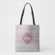 Ein schick grauer und duskyrosa Strickmuster Totbeutel mit einer Asche Rose farbiges Quarrefolionmonogramm Abzeichen. Personalisieren Sie, indem Sie Ihren Namen und mit Monogramm Initial. Dies ist Teil der Harbor Mist Strick Pattern Ash Rose Monogram Kollektion. Flachdruckbild, NICHT gestrickte Spitze.