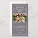 Nutzen Sie diese eleganten Fotokarten, um sich bei Ihren Gästen zu bedanken, dass sie Teil Ihrer Hochzeitsfeier sind. Passen Sie Ihre eigenen Nachrichten, Namen und Bilder vollständig an.