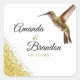 Chic Green Hummingbird and Gold Dust Wedding Quadratischer Aufkleber