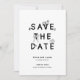 Diese Save the Date-Karte zeichnet sich durch ein lustiges Schwarzweiß-Design aus, das mit hochzeitsbezogenen Icons in die Schrift integriert wird. Es hebt die Namen der Paare und ihren Hochzeitstag in einem sauberen, modernen Layout hervor. Einfach und stilvoll mit einer spielerischen Touch.