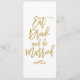 Stilvolles Hochzeitsmenü mit modernen Script-Schriftart und dem Motto "Essen, trinken und Verheiratet sein" auf der Rückseite.