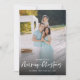 Versenden Sie die diesjährigen Feiertagsgrüße mit Stil. Ihr besonderes Foto wird in diesen einzigartigen und modernen Urlaubskarten großartig aussehen, die mit einem handgeschriebenen Weihnachtsüberhang über Ihrer Lieblingslandschaft oder dem horizontalen Foto stehen. Reverse Card ist voll editierbar, um das Foto-Farbschema zu wählen. Verwenden Sie die Vorlage, um Ihre Daten hinzuzufügen