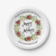 Chic Happy Holidays Script Poinsettia Monogram Pappteller