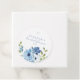 Dieses runde Hochzeitsduschen-Gunstbeutel-Tag hat weiche blaue Wasserfarbe-Blumen mit eleganter Schrift und Serifenschrift. Entwickelt, um Gunstbeutel, Leckereien und Geschenktaschen zu personalisieren, fügt es eine zusammenhängende abschließende Note zu einer blauen floralen Hochzeitsdusche hinzu. Anpassen mit dem Namen der Braut und dem Datum des Ereignisses, um Ihre Feierdetails abzustimmen. Koordiniert nahtlos mit passenden Einladungen, Schildern und Duschen-Schreibwaren.