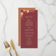 Chic Herbst orange Terracotta Blumenmenü. Genießen Sie die Hochzeit im Herbst am Tisch mit dem schicken Herbstmenü mit eleganten Orange- und Terracotta-Blumen. Die warmen, rustikalen Töne schaffen einen eleganten und einladenden Look, der sich perfekt für eine saisonale Feier eignet. Stilvoll und funktionell präsentiert dieses Menü Ihr sorgfältig zubereitetes Essen und verleiht Ihrem Empfang eine charmante Touch.