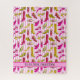 Puzzle in Girly-Rosa mit handgezeichneten Abbildungen von High Heels, Stilettos, Sandalen, Schuhen und Stiefeln in hübschem Rosa und Gelb. Es gibt einen anpassbaren Streifen unten, um Ihren Namen oder Ihre Nachricht hinzuzufügen. Das perfekte Geschenk für Teenager und Erwachsene-Schuhsüchtige!