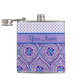 Eine schicke Hip Flask zum Personalisieren, mit einem Mix'n'match-Muster traditioneller Ogee-Formen in Eggplant, Blau und Weiß, kombiniert mit den passenden Pollka-Punkten von Pale Mauve auf weißem Hintergrund. Teil der Posh & Painterly Kollektion "Lila Pop".
