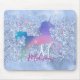 Chic ice blue unicoron Glitzer stars monogram Mousepad