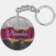 Chic Imitate silber Glitzer Fuchsia schwarze Monog Schlüsselanhänger