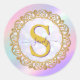 Chic Iridescent Initial mit Gold Scrollwork Runder Aufkleber