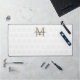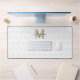 Chic Ivory White Gold Anahaw Leaf Script Monogram Schreibtischunterlage