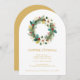 Chic Joyful Winter Christmas Wreath Holiday Party Invitations Cards in Digital Watercolor Style. Faux Gold Back.