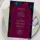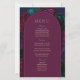 Chic Juwel tönt blumenburgundische Hochzeitskarte der Marine. Fügen Sie Ihrem Empfang eine Touch Eleganz hinzu, mit diesem schmuckreichen, blumengeschmückten Hochzeitsmenü. Dieses Design mit einer raffinierten Palette von Bordeaux-, Marine-, Fuchsia-, Magenta-, Türkis- und lila Blumen ergänzt wunderbar ein romantisches Hochzeitsthema. Die stilvolle Typografie und das moderne Layout machen jeden Platz mit Grazie und Klarheit zu einem Highlight und sorgen für ein nahtloses kulinarisches Erlebnis. Diese Karte ist perfekt für Herbst-, Winter- oder Abend-Hochzeiten. Sie ist eine praktische und dekorative Ergänzung zu Ihrem Tisch.