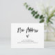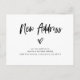 Diese schwarz-weiß bewegten Ankündigungen sind mit modernen lässigen Schriften versehen, die neben einem handgezeichnet Herz "neue Adresse" enthalten. Auf der Rückseite ist mehr Platz, um zusätzliche Notizen hinzuzufügen. Ein schlichtes und elegantes Design, das der perfekte Weg ist, um Freunde und Familie lassen wissen, dass Sie sich bewegt haben.