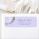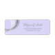 Ein klassisches Label mit silberfarbenem Ringdesign, das mit künstlerisch weiße Pinselstriche übersät ist und auf einem weichen Lavendelhintergrund überlagert ist. Personalisieren Sie es mit dem Link Anpassen. Dies ist Teil einer schicken Sammlung mit einer passenden Einladung, Umschlag und anderen Hochzeitsessenziellen.