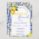 Chic Lemon Mediterranean Blue Tiles Bridal Brunch Einladung